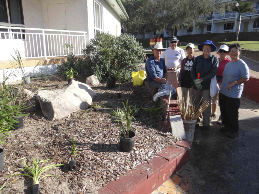 FIDO volunteers starting the planting of the gardens at the Entrance to the Reception area of Eurong Resort, a site passed by hundreds of people on a daily basis.