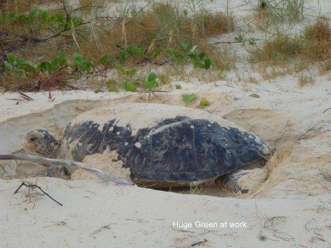 Green turtle numbers vary dramatically from season to season, and we hope to be able to estimate this season’s population from three short 6/7/6-day track count surveys taken in late November, late December, and early February.