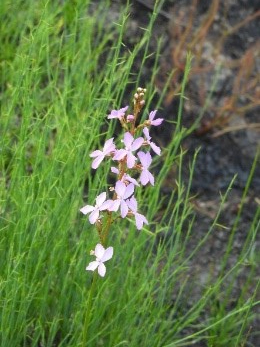 Flowering is well underway in these systems. We were treated to an abundance of blooms from various species, e.g. Drosera binata (forked sundew) Fig. 6, Hibbertia salicifolia, Stylidium spp. (trigger plants) Fig. 7, and Burmannia disticha Fig. 8.