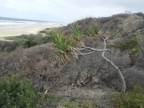 The foredune complex includes fire-sensitive communities, particularly the Casuarina equisetifolia (coastal she-oak) woodlands-open woodlands.