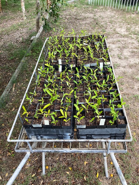 Over the course of this trip, we collected twenty-two coastal plant species from both dunal areas and bushland behind Eurong. Six of these species needed to be sowed and propagated fresh whilst the others needed to be stored for later processing. As well as this, we also potted four separate species which totalled 220 plants.