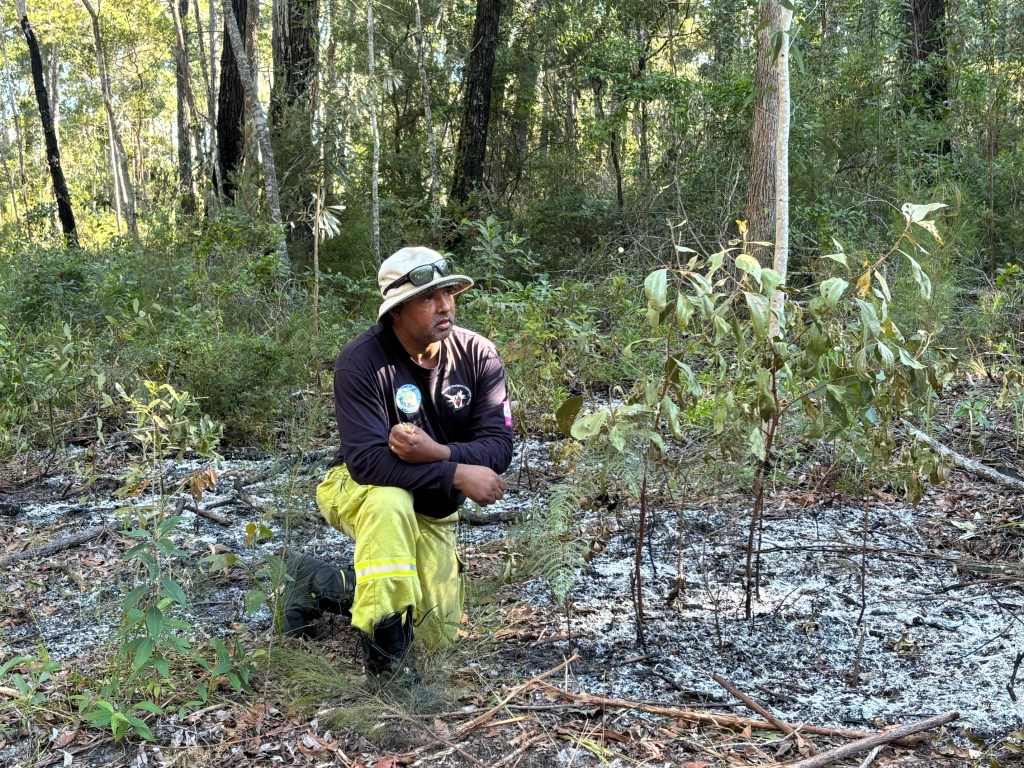 FINIA members were fascinated to hear how the Butchulla community have been manually removing broad-leafed wattle and casuarina and using cultural burning to open up the vegetation understory and support elder trees to thrive. ‘Opening up’ Country increases wildlife habitat and reduces future fire risk. Members joined the BAC’s Conway Burns and Darren Blake for a hands-on activity, removing casuarina plants on-site.
