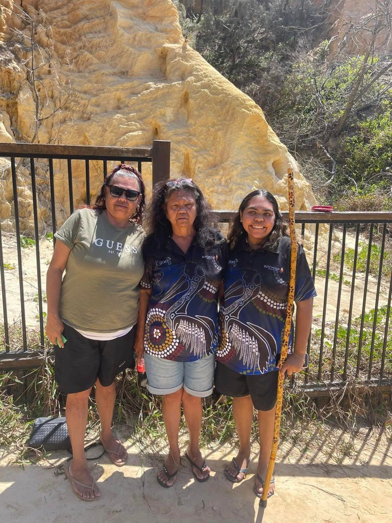 BAC Chair, Auntie Gayle Minniecon led an activity that highlighted the significance of K’gari’s Water Stories to the Butchulla people including Boorangoora – waters of wisdom, Wanggoolba Creek – new life, and Eli Creek – ancient waters. Combining these waters with coloured sands, each participant took home a permanent reminder of the cultural camp and the knowledge that had been shared.