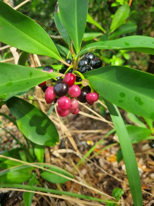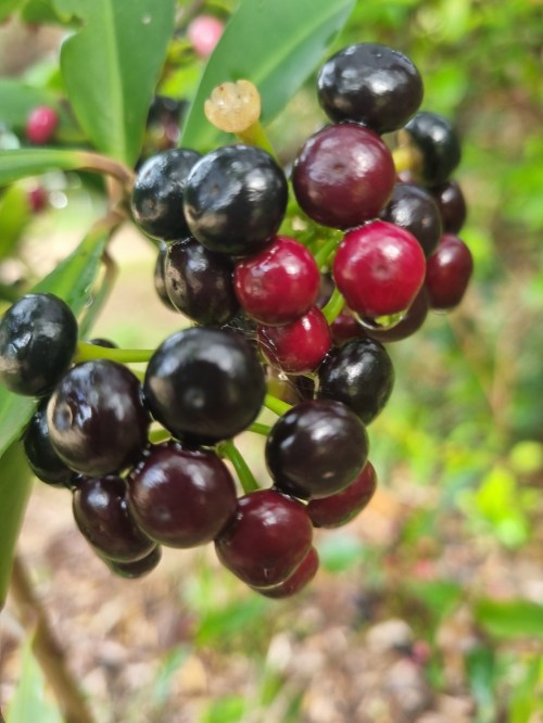Ardisia elliptica is commonly called shoebutton ardisia, China shrub, duck’s eye, jet berry and shoebutton. It is listed in the IUCN Global Invasive Species Database where it is among the top 100 of the world’s worst invasive alien species.