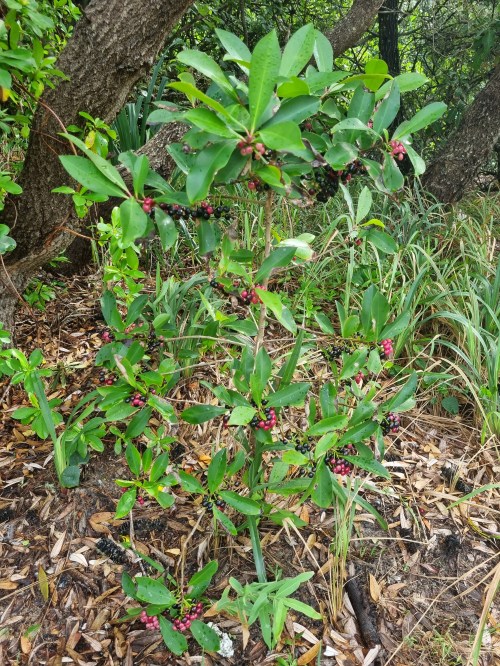 While the flowering stage of the plant was not observed, it now (May) has hundreds of berries ranging from pink to black. Eurong resident, David Anderson has alerted Queensland Parks and Wildlife Service, Fraser Coast Council, the Weedspotters Network and submitted a sample for verification by the Queensland Herbarium, who have now confirmed the identification.