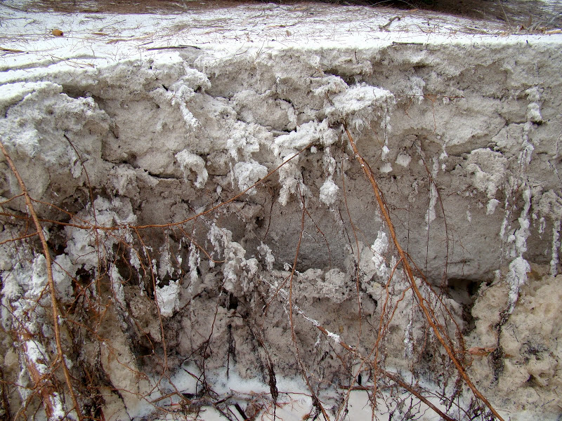 As the beach erodes away fungal hyphae hold some sand to the roots