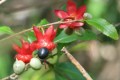 Description: Vigorous twining habit, pinnate leaves with 5-17 leaflets, small pinkish pea shaped flowers, flat rough textured pods with hard bright red seeds with a black spot on each (more…)